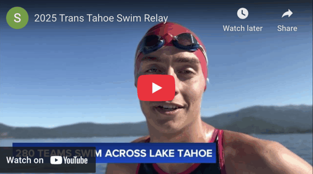 10-mile swim from Sand Harbor, Nevada to Skylandia Beach, Tahoe City, CA. Almost 240 teams of 6 members competed in this annual event, founded in 1977, by the Host Olympic Club. Under warm weather conditions
